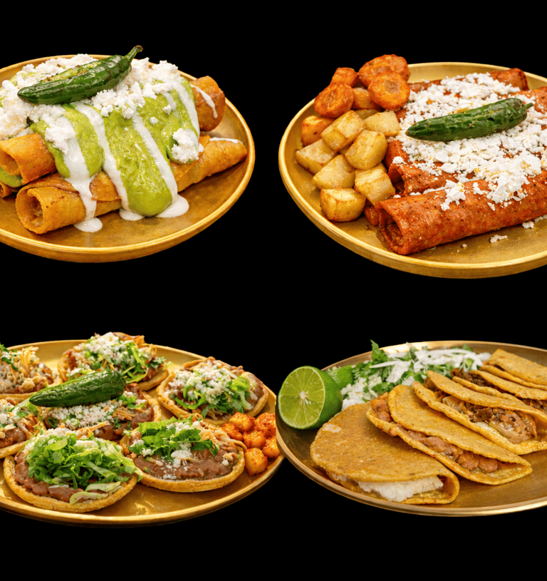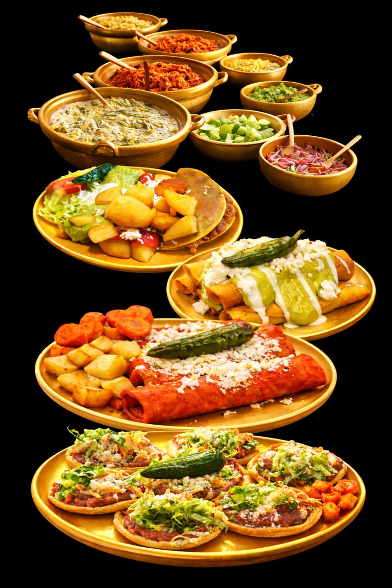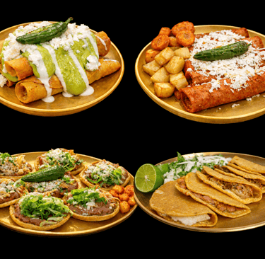 Consiente a tus invitados con órdenes de Antojitos Mexicanos recién preparados en tu evento: Flautas, enchiladas, tacos dorados y sopes para escoger en tu platillo